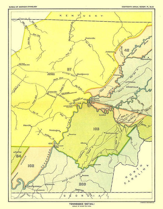 Tennessee - Detail - Hoen 1896 White Modern Wood Framed Art Print with Double Matting by Hoen