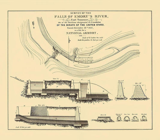 Emory River Falls Tennessee National Armory White Modern Wood Framed Art Print with Double Matting by US Senate