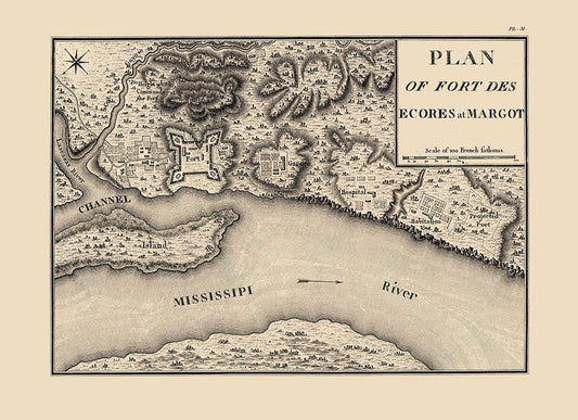 Fort Des Escores, Margot Tennessee - Collot 1796 White Modern Wood Framed Art Print with Double Matting by Collot