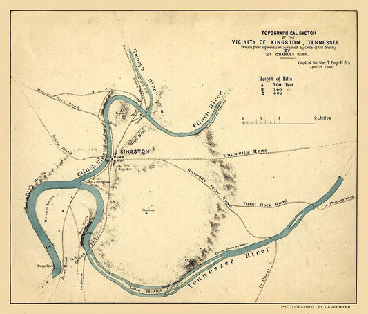 Kingston Tennessee - Michler 1863 White Modern Wood Framed Art Print with Double Matting by Michler