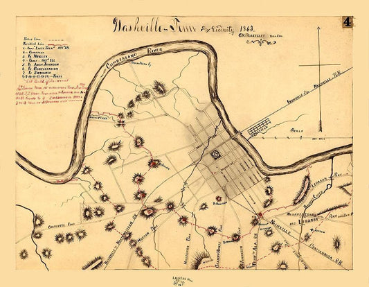 Nashville Tennessee Landowner - Poe 1864 White Modern Wood Framed Art Print with Double Matting by Poe