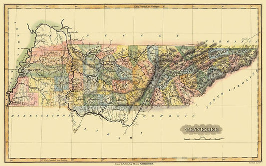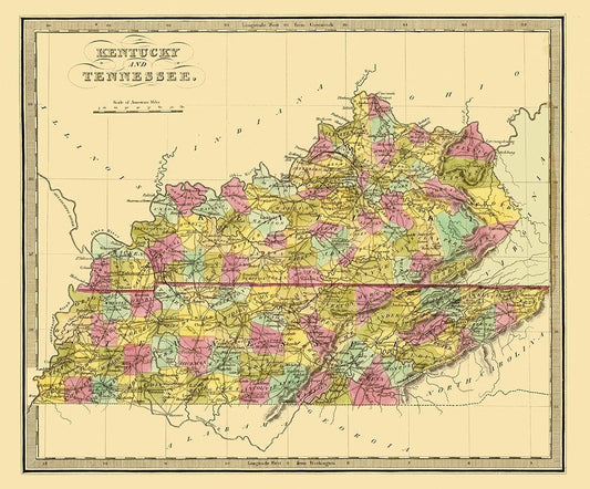 Kentucky, Tennessee - Brattleboro 1840 White Modern Wood Framed Art Print with Double Matting by Brattleboro