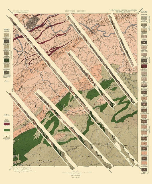 Knoxville Tennessee North Carolina Sheet White Modern Wood Framed Art Print with Double Matting by USGS