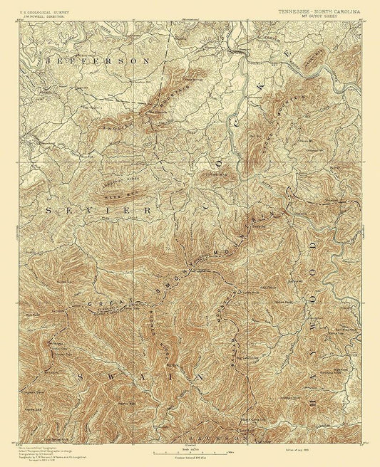 Mt Guyot Tennessee North Carolina Sheet White Modern Wood Framed Art Print with Double Matting by USGS