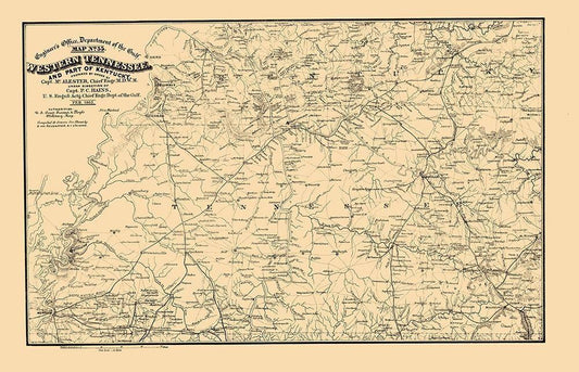 West Tennessee, Part of Kentucky 1865 White Modern Wood Framed Art Print with Double Matting by von Reizenstein