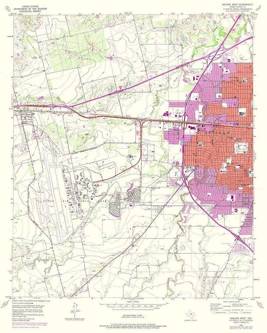 West Abilene Texas Quad - USGS 1957 White Modern Wood Framed Art Print with Double Matting by USGS
