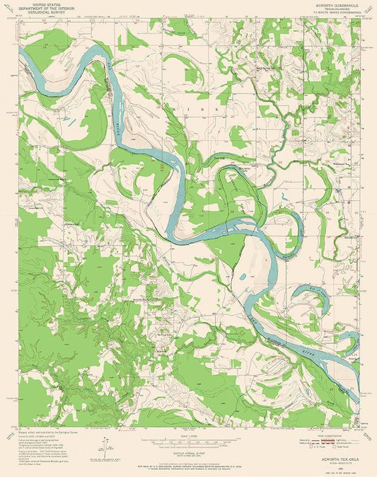 Acworth Texas Quad - USGS 1950 White Modern Wood Framed Art Print with Double Matting by USGS