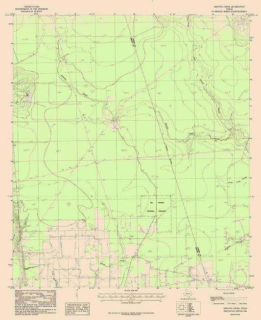 Arizona Creek Texas Quad - USGS 1984 White Modern Wood Framed Art Print with Double Matting by USGS