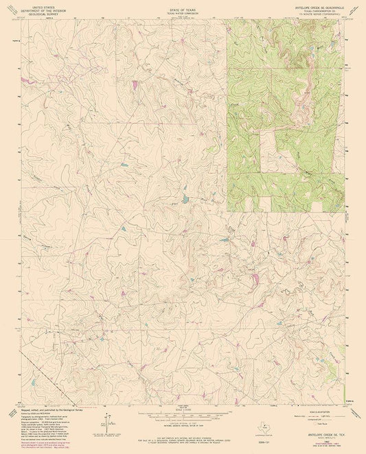 South East Antelope Creek Texas Quad - USGS 1962 White Modern Wood Framed Art Print with Double Matting by USGS