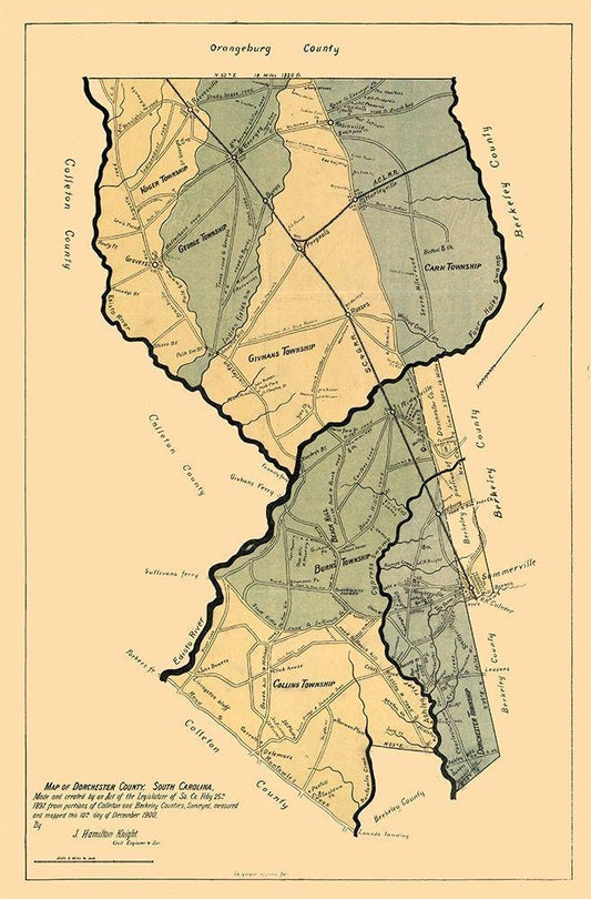 Dorchester County South Carolina - Knight 1900 White Modern Wood Framed Art Print with Double Matting by Knight