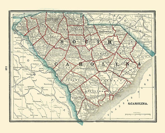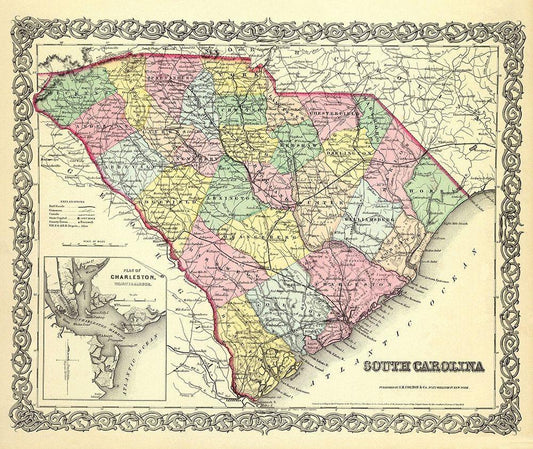 South Carolina - Colton 1855 White Modern Wood Framed Art Print with Double Matting by Colton