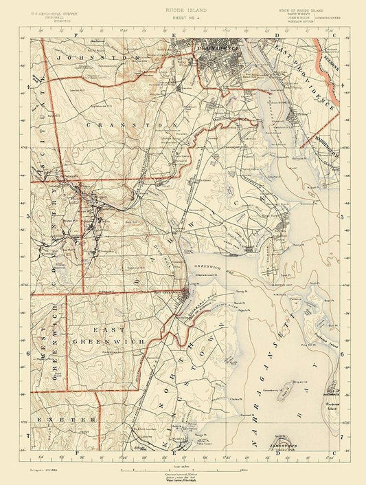 Rhode Island 4 of 10 Sheet - USGS 1891 White Modern Wood Framed Art Print with Double Matting by USGS