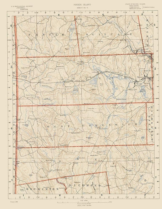 Rhode Island 5 of 10 Sheet - USGS 1891 White Modern Wood Framed Art Print with Double Matting by USGS