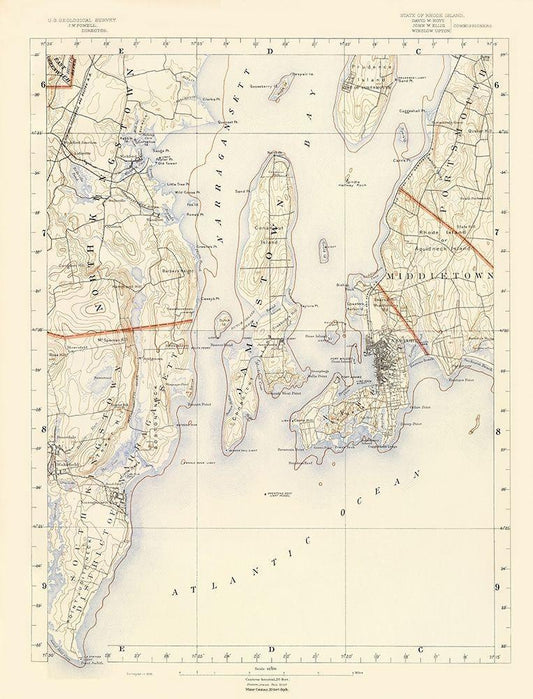 Rhode Island 9 of 10 Sheet - USGS 1891 White Modern Wood Framed Art Print with Double Matting by USGS
