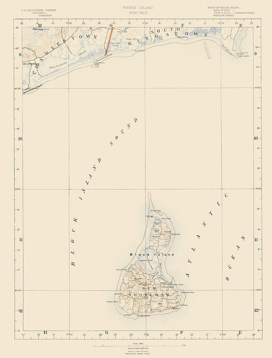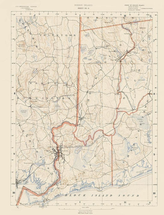 Rhode Island 10 of 10 Sheet - USGS 1891 White Modern Wood Framed Art Print with Double Matting by USGS