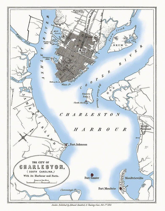 Charleston South Carolina - Stanford 1861 White Modern Wood Framed Art Print with Double Matting by Stanford