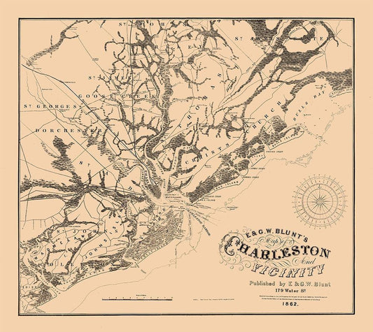 Charleston South Carolina - Blunt 1862 White Modern Wood Framed Art Print with Double Matting by Blunt