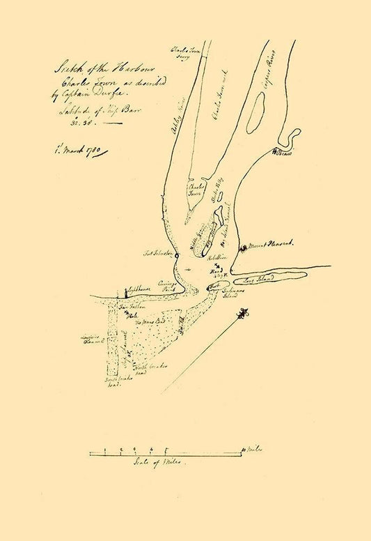 Charles Townn South Carolina - Durfee 1780 White Modern Wood Framed Art Print with Double Matting by Durfee