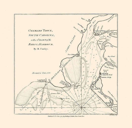 Charles Town South Carolina - Cowley 1780 White Modern Wood Framed Art Print with Double Matting by Cowley