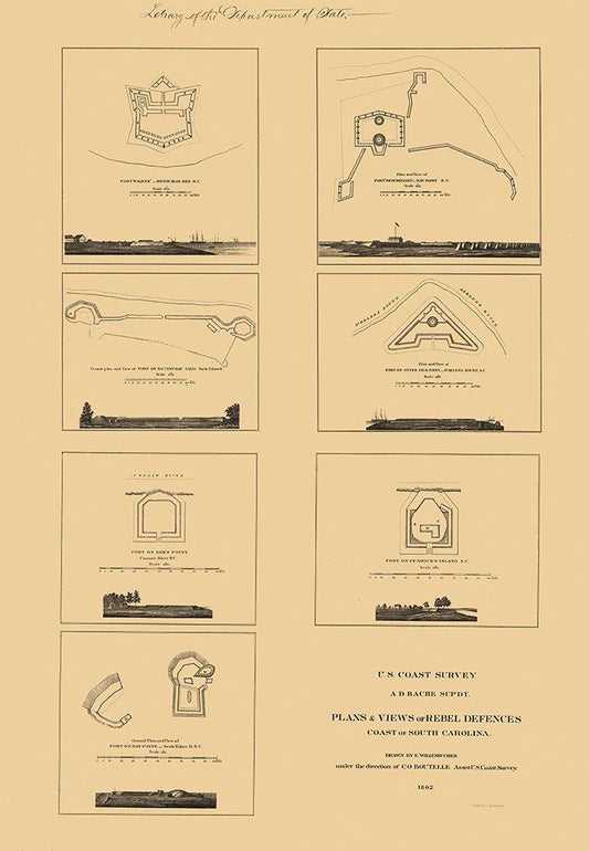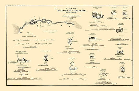 Charleston Coastal Defences - Willenbucher 1865 White Modern Wood Framed Art Print with Double Matting by Willenbucher