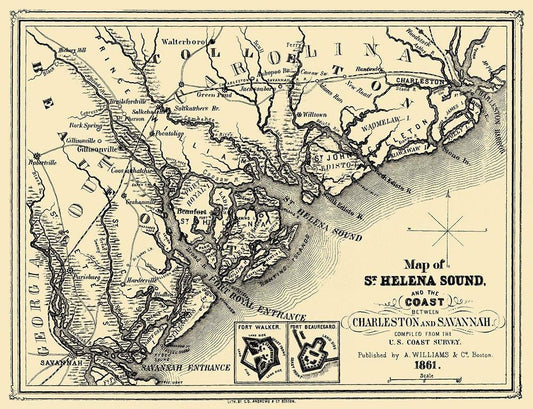 St Helena Sound - Williams 1861 White Modern Wood Framed Art Print with Double Matting by Williams