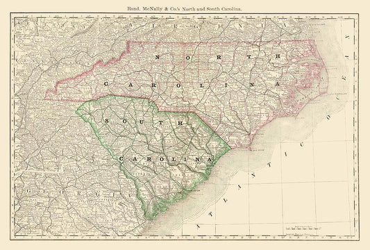 North Carolina, South Carolina - Rand McNally 1879 White Modern Wood Framed Art Print with Double Matting by Rand McNally