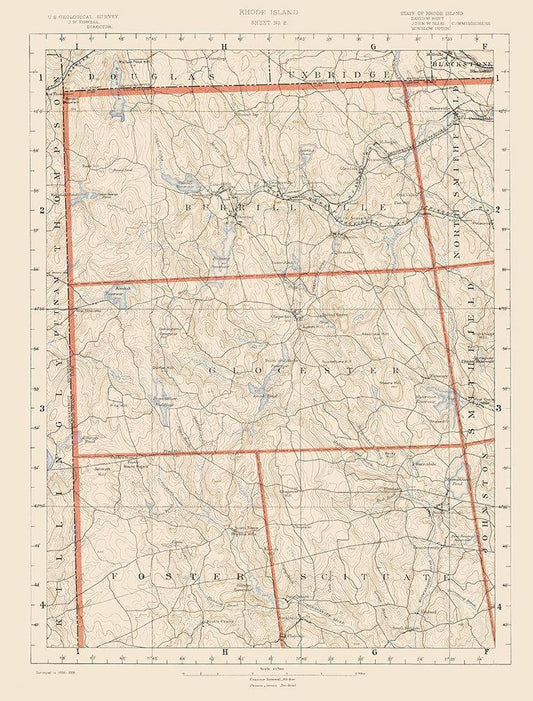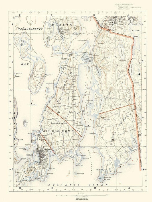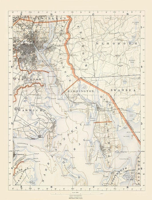 Rhode Island 2 of 10 Sheet - USGS 1891 White Modern Wood Framed Art Print with Double Matting by USGS