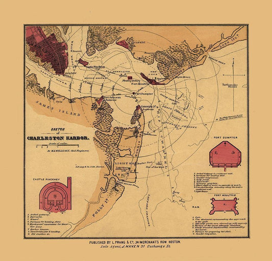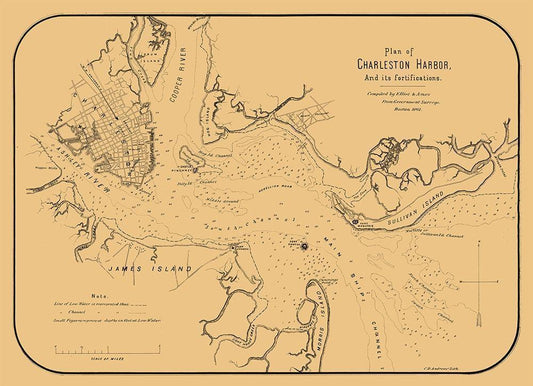 Charleston Harbor South Carolina - Elliot 1861 White Modern Wood Framed Art Print with Double Matting by Elliot
