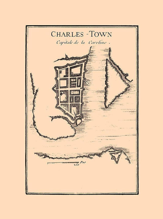 Charles Town South Carolina -1780 White Modern Wood Framed Art Print with Double Matting by Unknown