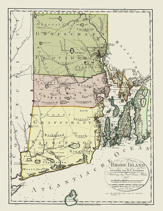 Rhode Island - Bohn 1797 White Modern Wood Framed Art Print with Double Matting by Bohn