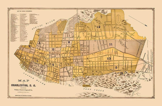 Charleston South Carolina - Cogswell 1891 White Modern Wood Framed Art Print with Double Matting by Cogswell
