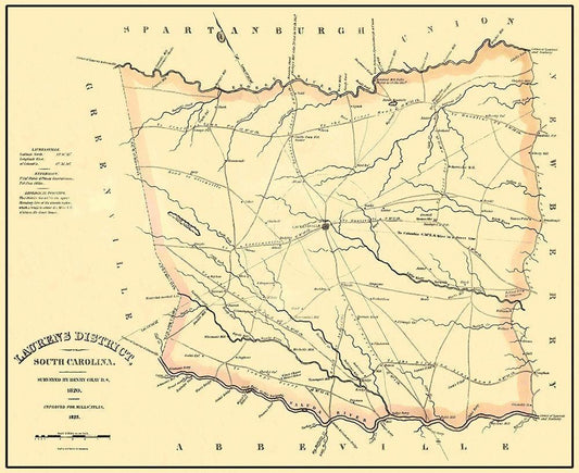 Laurens South Carolina Landowner - Mills 1825 White Modern Wood Framed Art Print with Double Matting by Mills