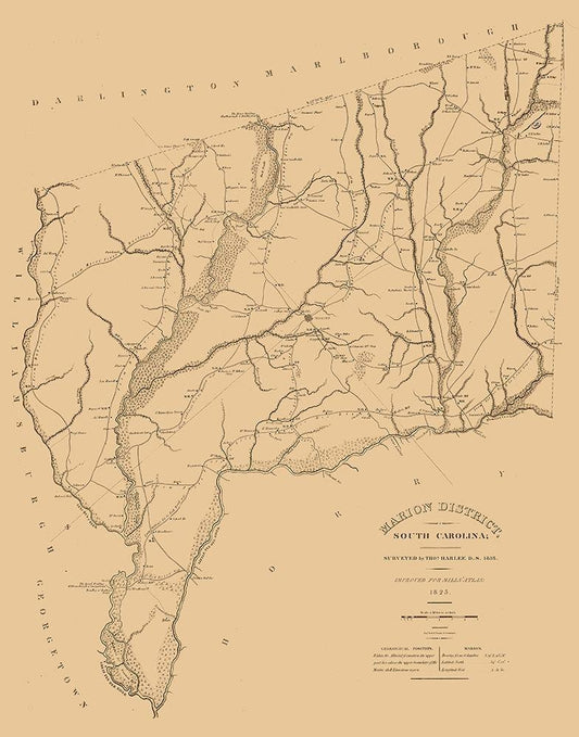 Marion County South Carolina - Harlee 1825 White Modern Wood Framed Art Print with Double Matting by Harlee