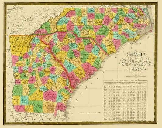 North Carolina, South Carolina , Georgia 1831 White Modern Wood Framed Art Print with Double Matting by Mitchell