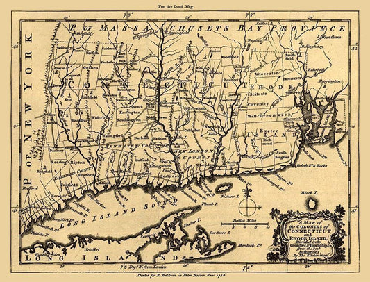 Connecticut Rhode Island - Kitchin 1758 White Modern Wood Framed Art Print with Double Matting by Kitchin