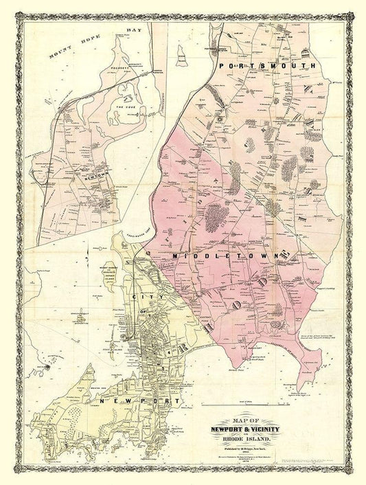 Newport Rhode Island - Dripps 1870 White Modern Wood Framed Art Print with Double Matting by Dripps