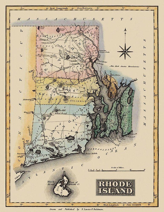 Rhode Island - Lucas 1823 White Modern Wood Framed Art Print with Double Matting by Lucas