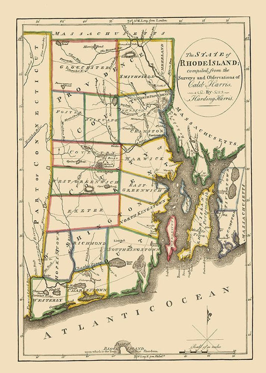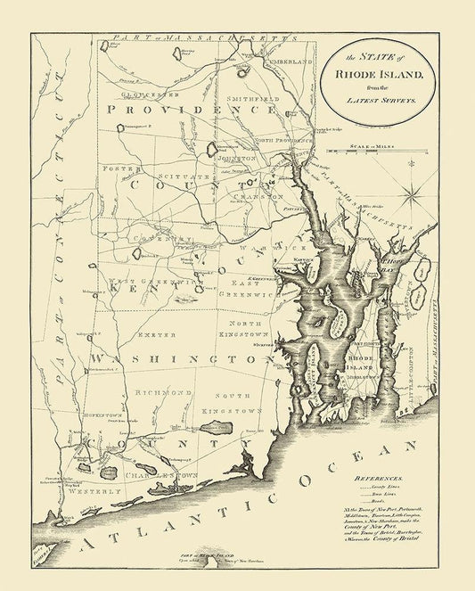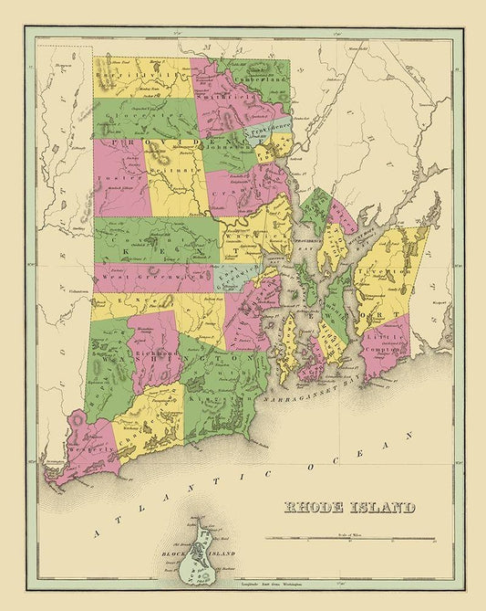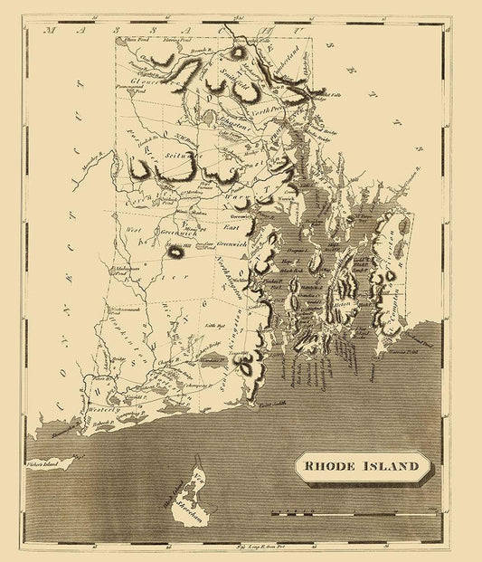 Rhode Island - Arrowsmith 1809 White Modern Wood Framed Art Print with Double Matting by Arrowsmith