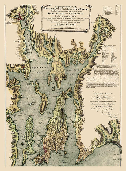 Narragansett Bay - Blaskowitz 1777 White Modern Wood Framed Art Print with Double Matting by Blaskowitz