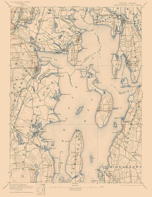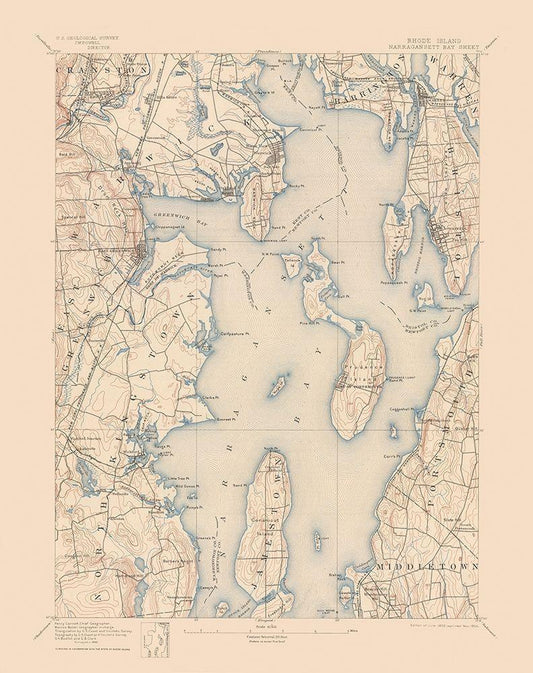 Narragansett Bay Rhode Island Sheet - USGS 1892 White Modern Wood Framed Art Print with Double Matting by USGS