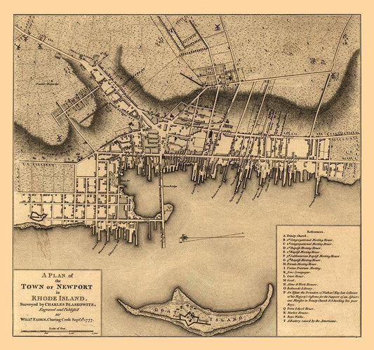 Newport Rhode Island - Blaskowitz 1777 White Modern Wood Framed Art Print with Double Matting by Blaskowitz