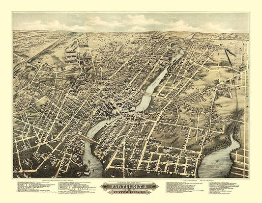 Pawtucket Central Falls Rhode Island - Vogt 1877 White Modern Wood Framed Art Print with Double Matting by Vogt
