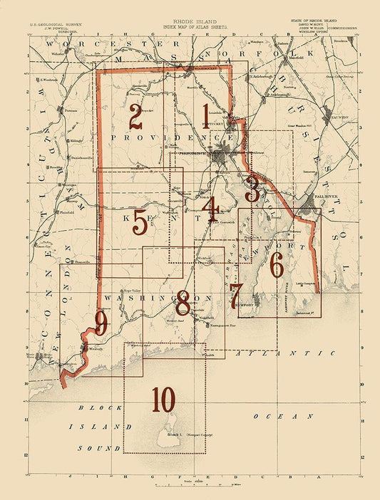 Rhode Island Rhode Island Index Sheet - USGS 1891 White Modern Wood Framed Art Print with Double Matting by USGS