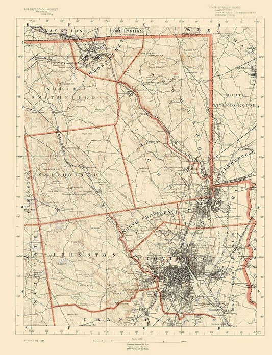 Rhode Island 1 of 10 Sheet - USGS 1891 White Modern Wood Framed Art Print with Double Matting by USGS