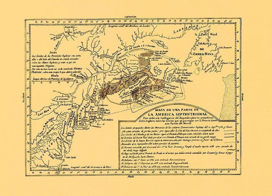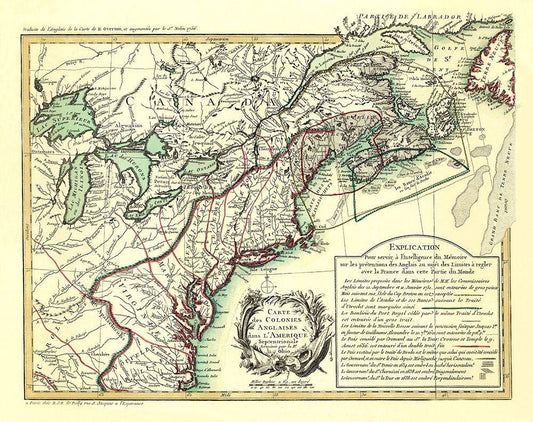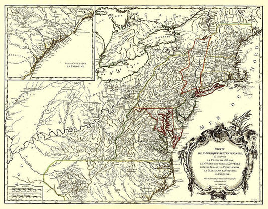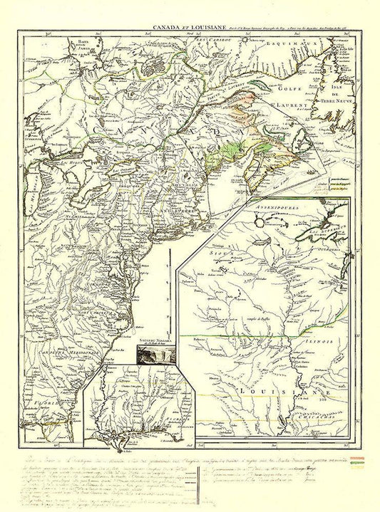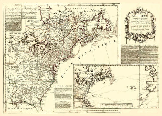 Northeastern Coast North America - Vaugondy 1755 White Modern Wood Framed Art Print with Double Matting by Vaugondy
