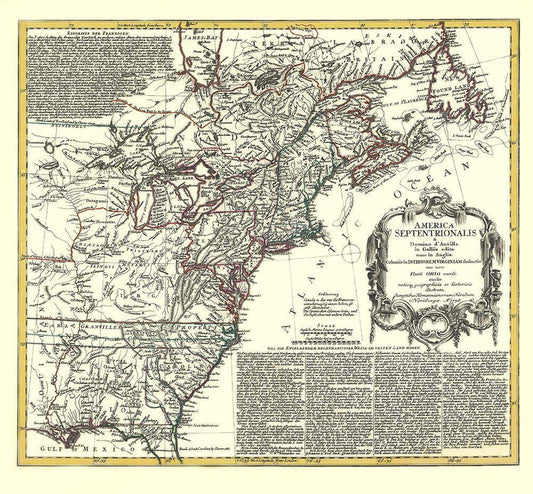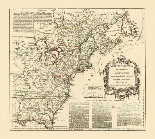 North America with Virginia Colonies White Modern Wood Framed Art Print with Double Matting by D''Anville