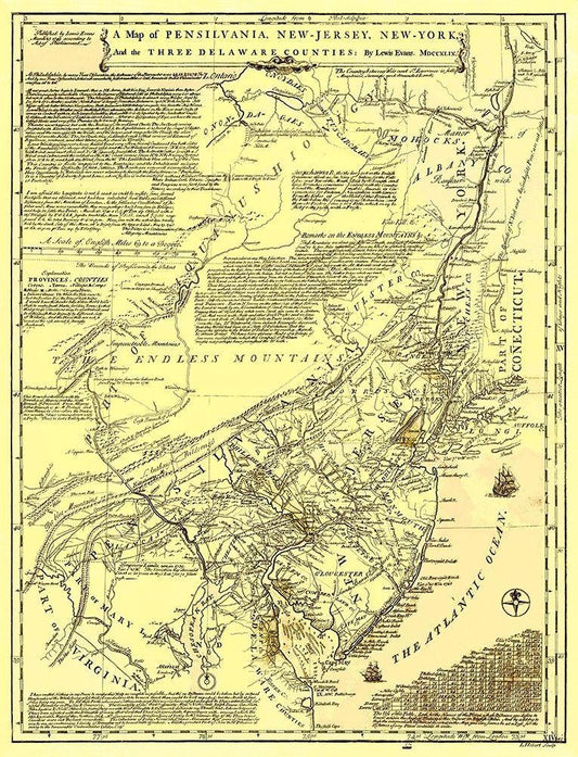 Middle British Colonies in America - Evans 1771 White Modern Wood Framed Art Print with Double Matting by Evans