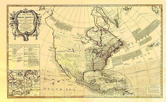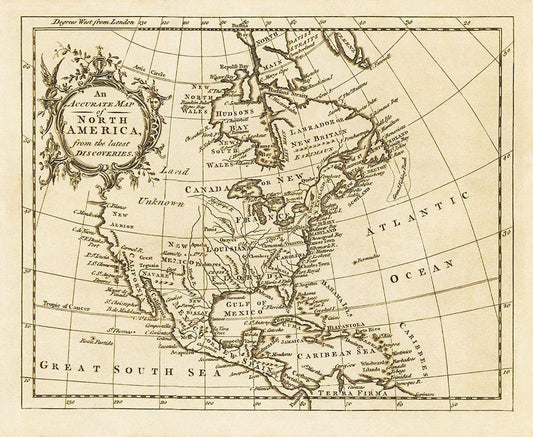 North America from the Latest Discoveries - 1750 White Modern Wood Framed Art Print with Double Matting by Unknown