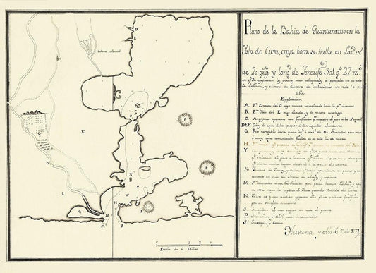 Plan of Guantanamo Bay On the Island of Cuba 1751 White Modern Wood Framed Art Print with Double Matting by Unknown