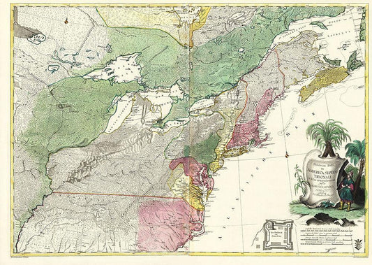 Great Britain Colonies North America - Tirion 1755 White Modern Wood Framed Art Print with Double Matting by Tirion